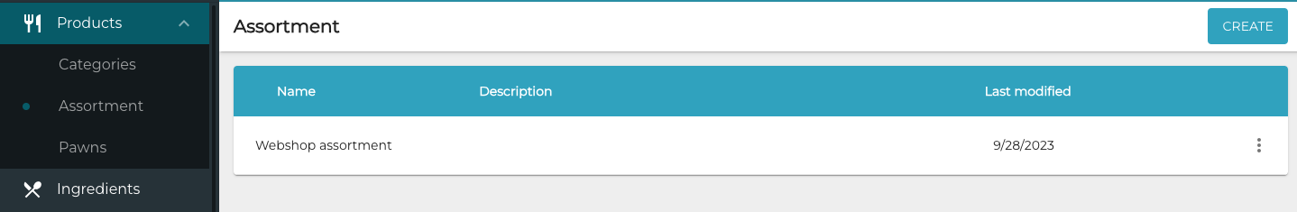 When you have selected all the products and/or product categories for the assortment, save your changes by clicking Save. The new assortment is now displayed in the Assortment view.