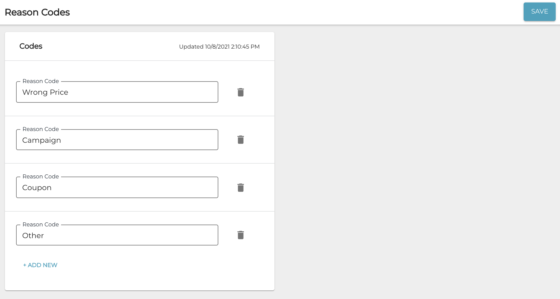 Click Save to create the new reason code.