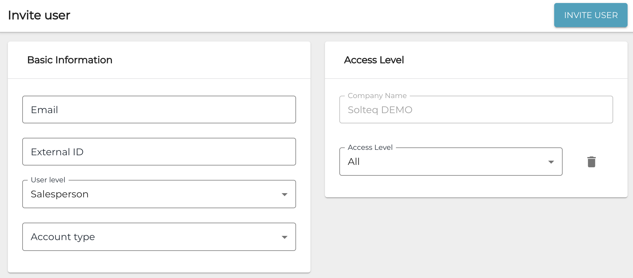 In the Invite user view, enter Basic Information for the user you want to invite: