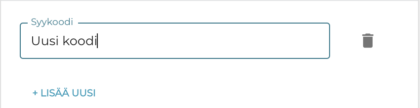 Tallenna uusi syykoodi klikkaamalla Tallenna.
